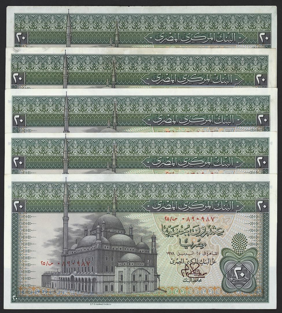 (x) Egypt, [26 notes] 1, 5, 10, 20 Egyptian Pounds, 1947-2002, (Pick 19, 22, 23, 25, 31, 38, 48, 63, 64), very good to extremely fine (26 notes)