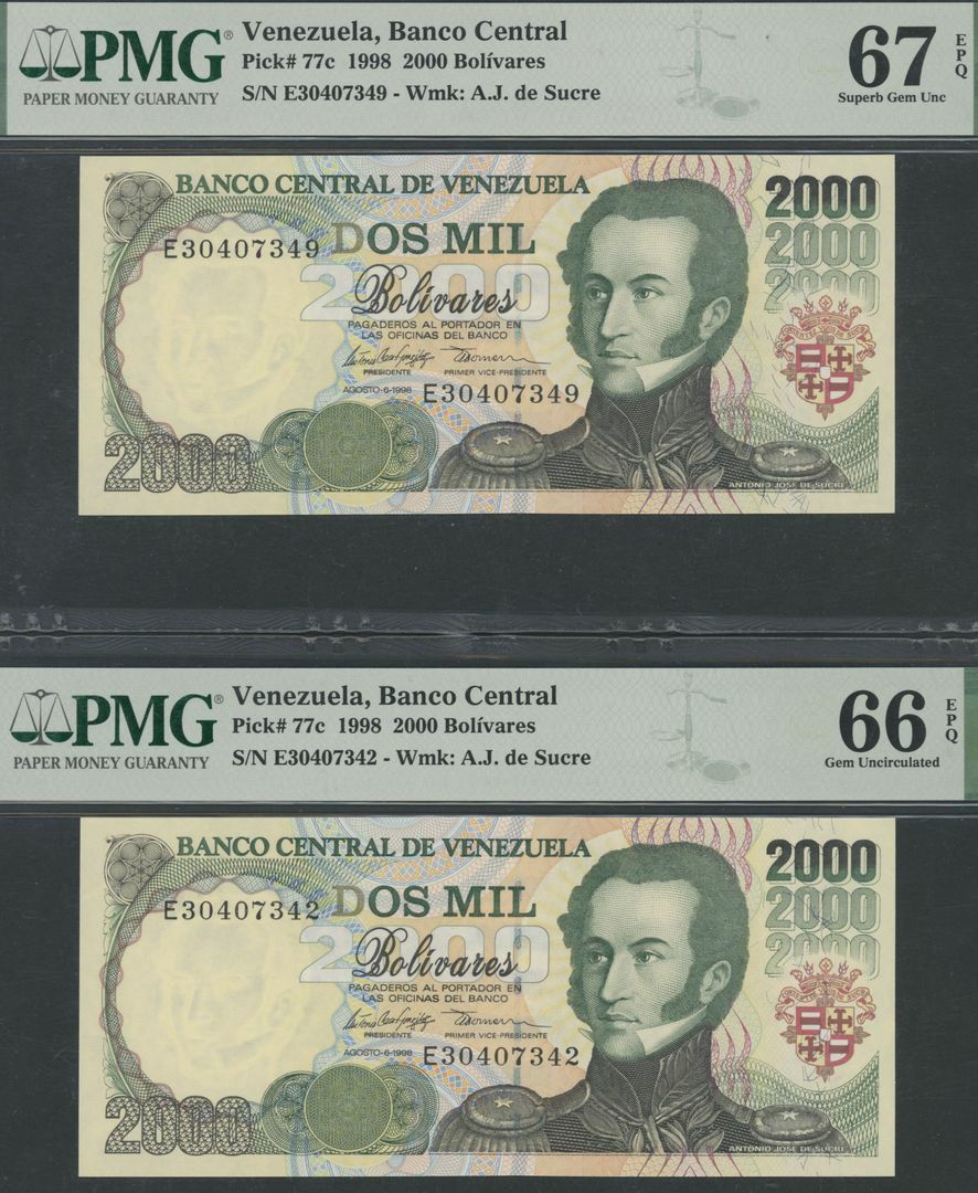 Venezuela (2), 2000 Bolivares, 1998, serial numbers E30407342 and E30407349