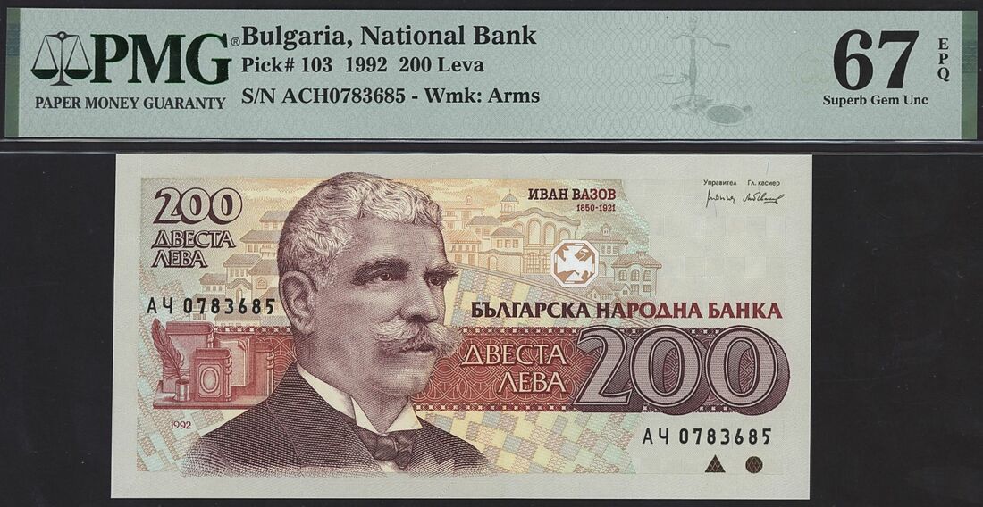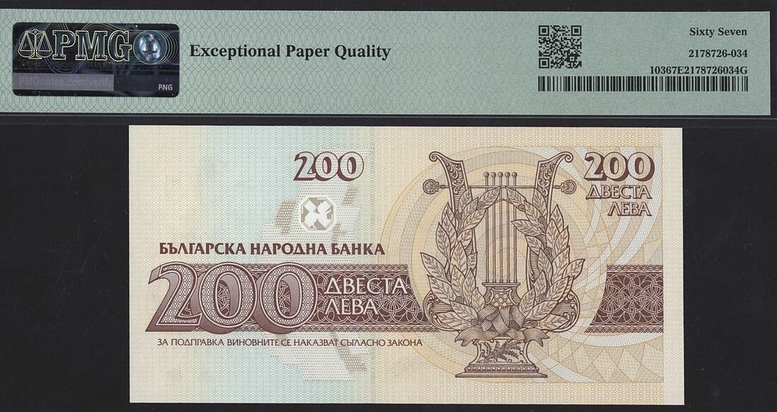 Bulgaria (x2): 200 Leva, 1992, serial number ACH0783685;