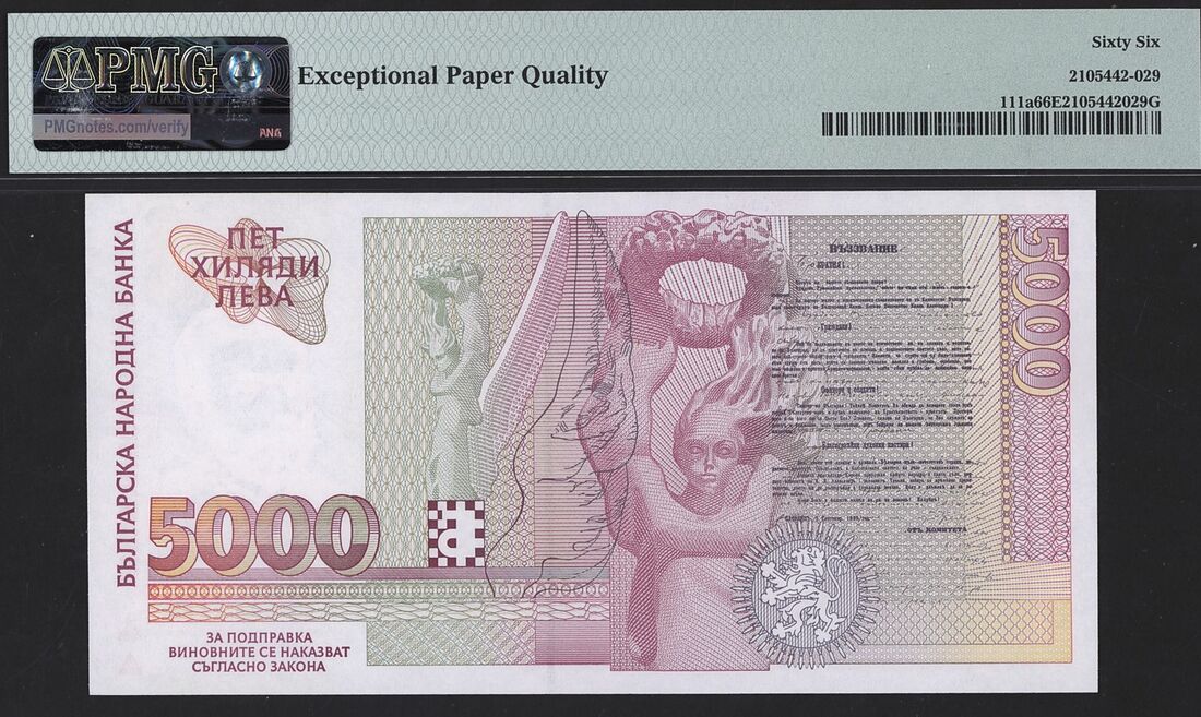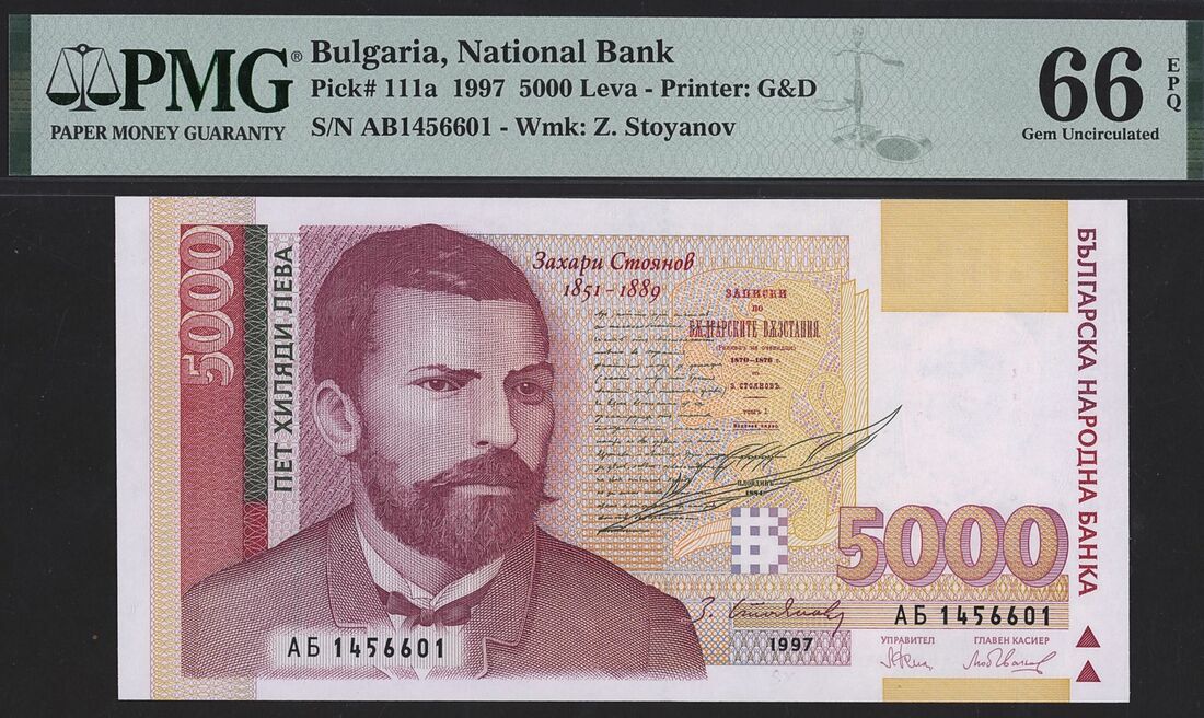 5000 Leva, 1997, serial number AB1456601;