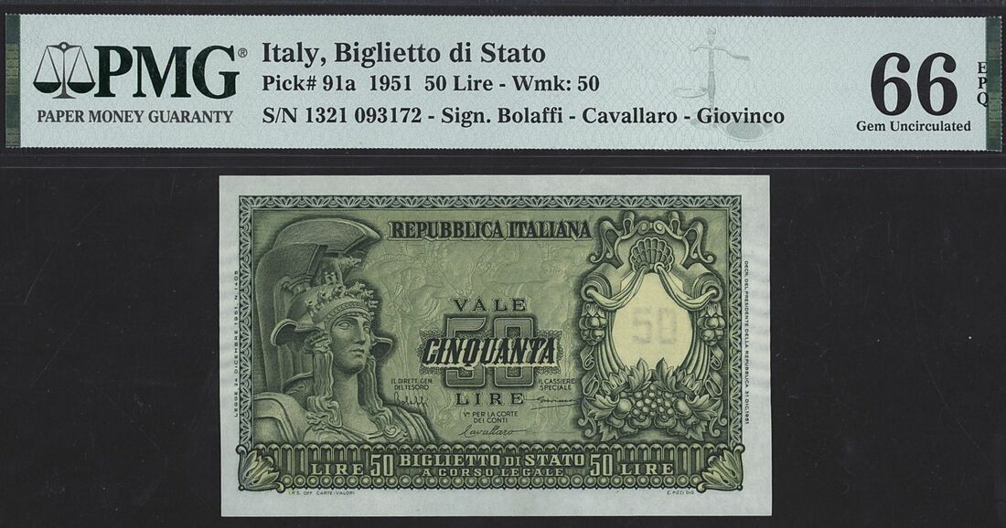 Italy (x2): Biglietto di Stato, 50 Lire, 31st December 1951, serial number 1321 093172;