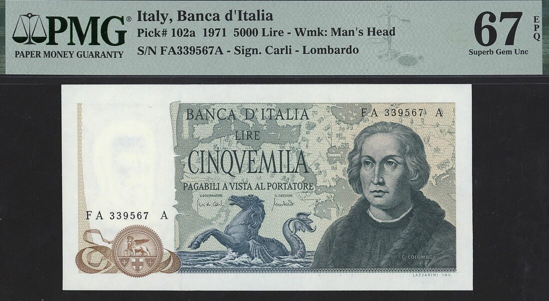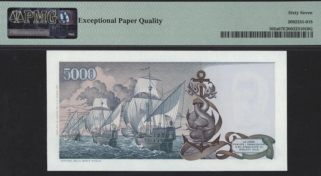 Banca d'Italia, 5000 Lire, 15th May 1971, serial number FA339567A;
