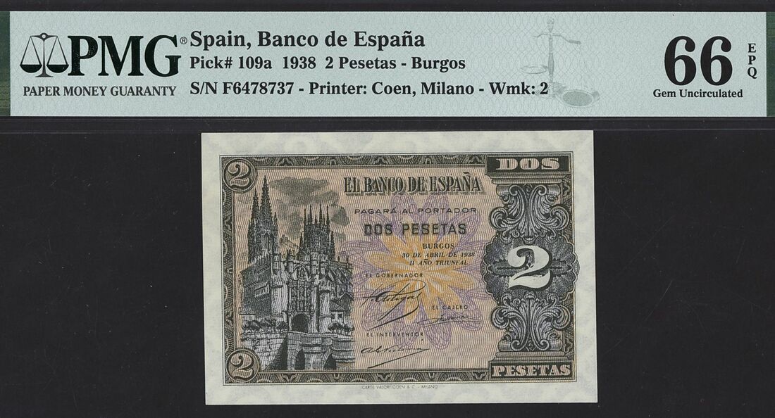 Spain, Banco de Espana (x3): 2 Pesetas, 30th April 1938, serial number F6478737; 5 Pesetas, 5th March 1948, serial number A02756319, 100 Pesetas, 17th November 1970, serial number X1118620;