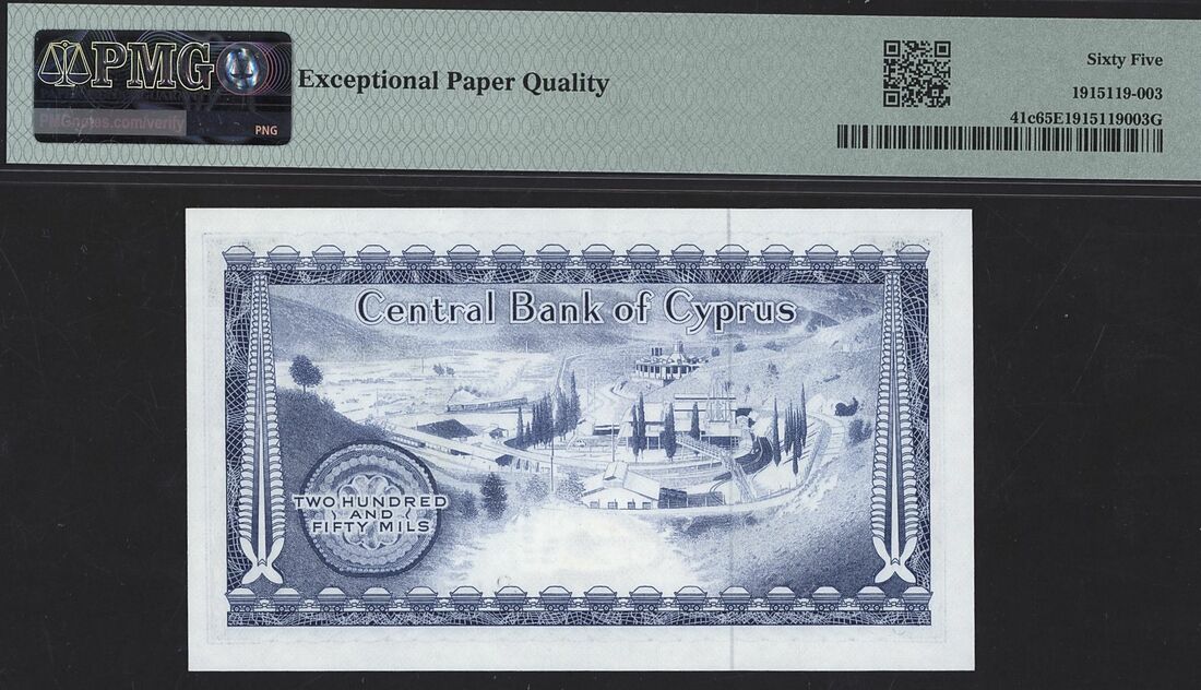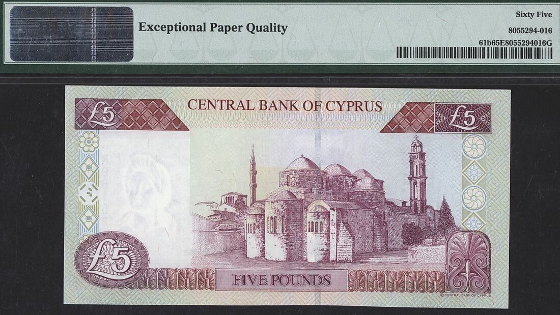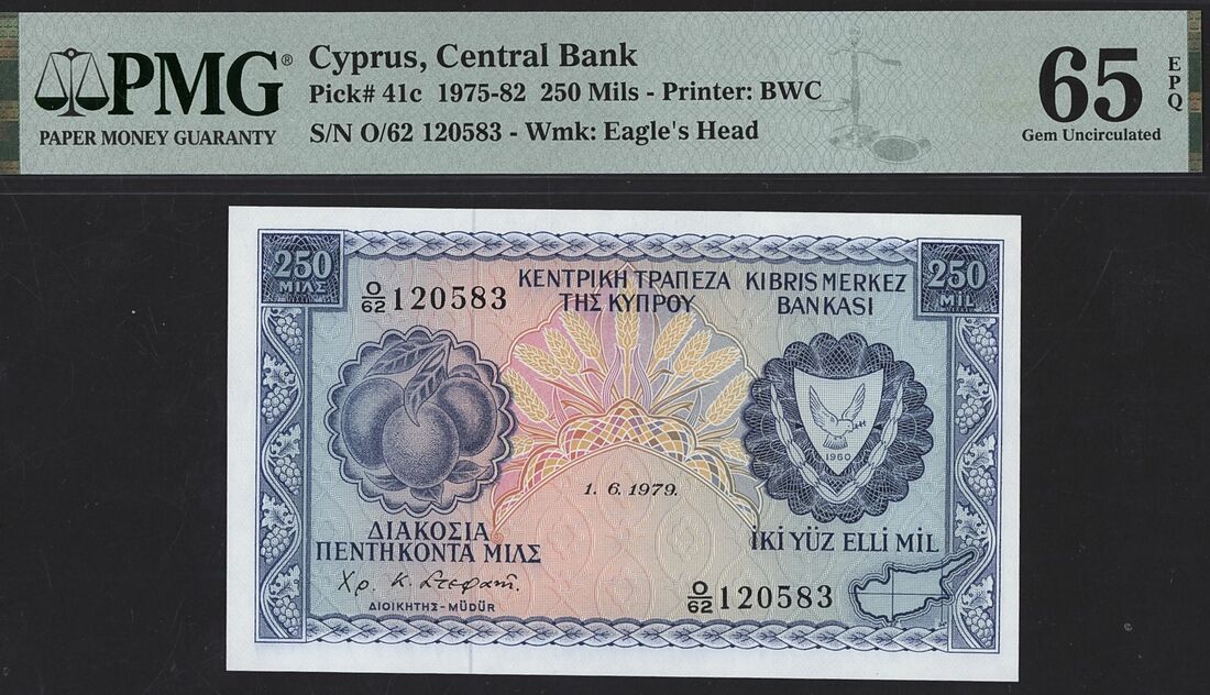 Cyprus, Central Bank (2): 250 Mils, 1st June 1979, serial number O/62 120583; £5, 1st September 2003, serial number R961521;