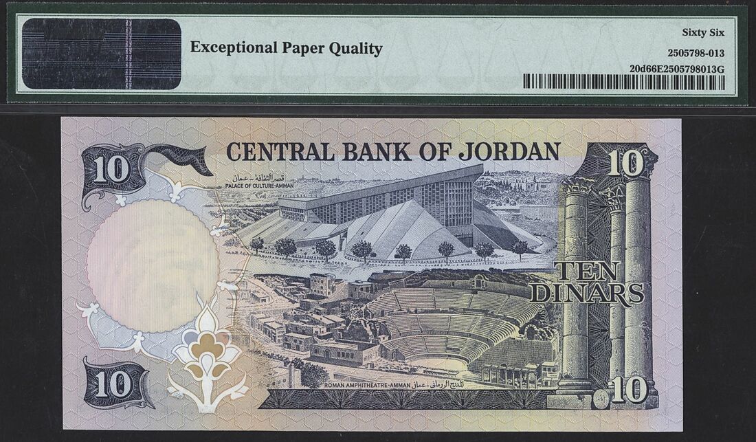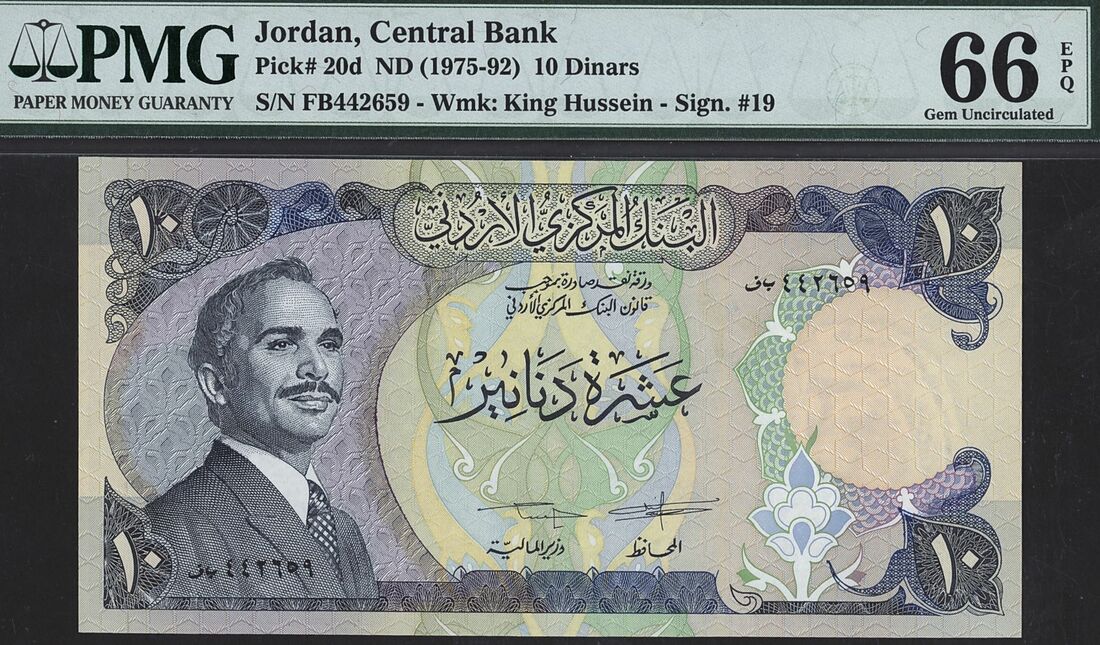 Jordan, Central Bank (1): 10 Dinars, ND (1975-92), serial number FB442659;