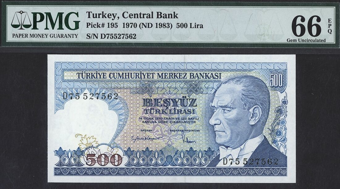 Turkey, Central Bank (1): 500 Lira, 14th January 1970, serial number D75527562