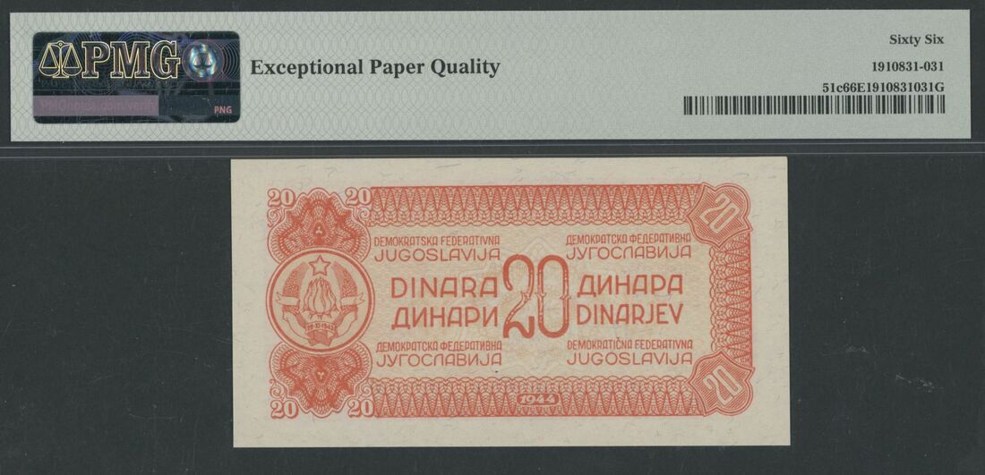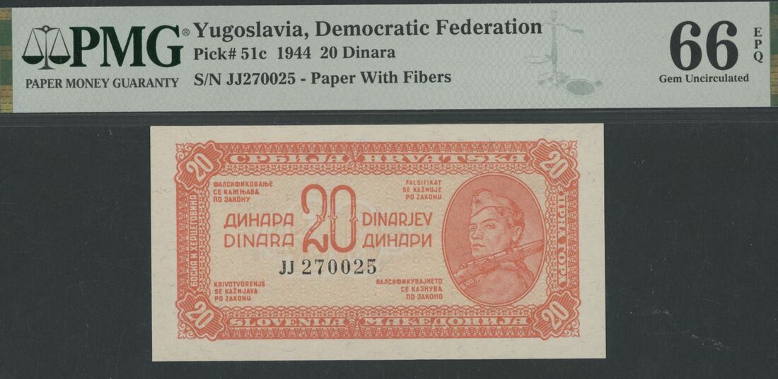 Yugoslavia (1), 20 Dinara, 1944, serial number JJ270025