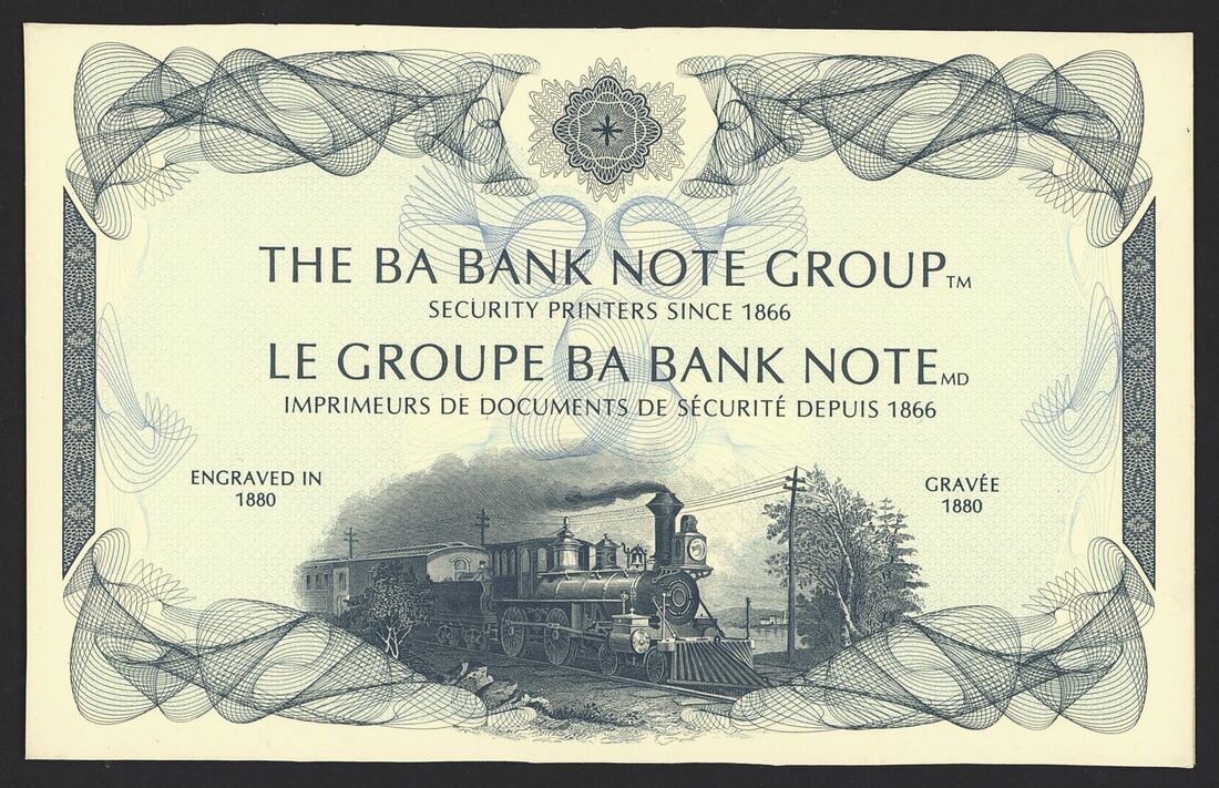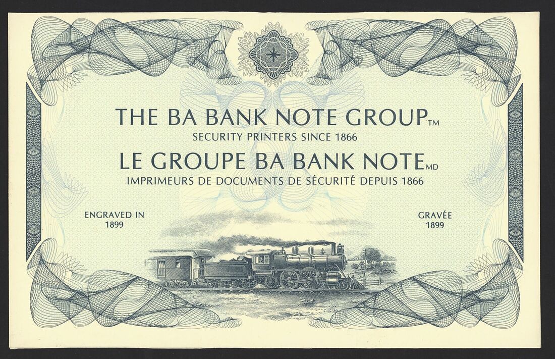 group of test notes, house notes, and promotional notes from Komori, KBA Giori, the BA Banknote Group, Charles Skipper & East, and Bradbury Wilkinson