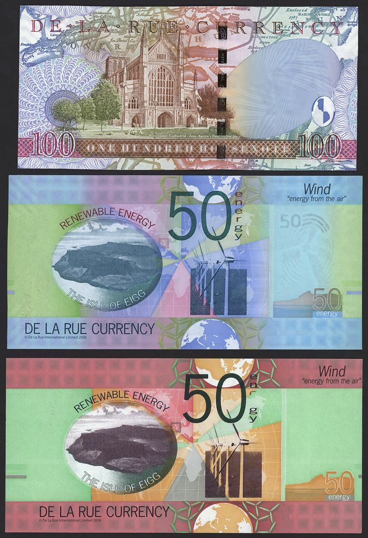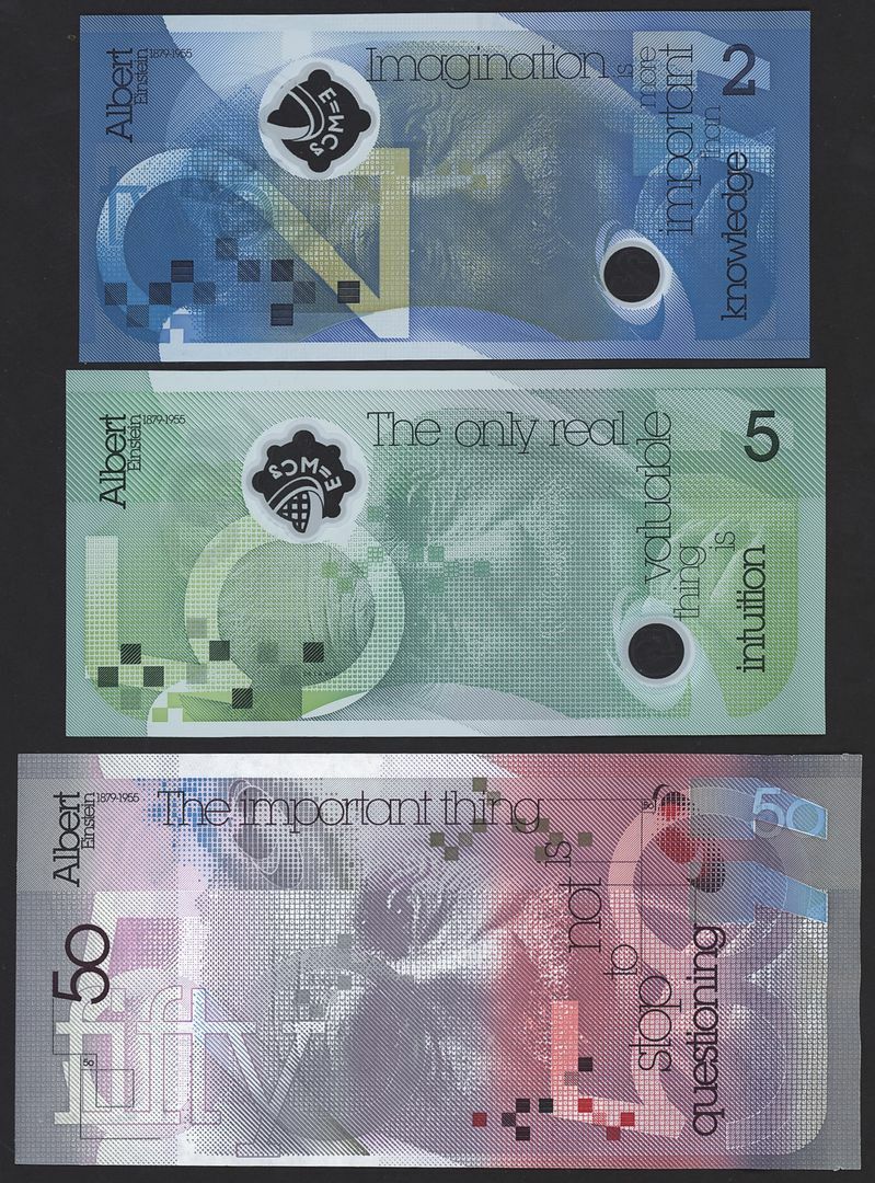 includes renewable energy, kaleidoscope, and 200th anniversary notes plus ones featuring Albert Einstein, Jane Austen, Christopher Wren, and Horatio Nelson