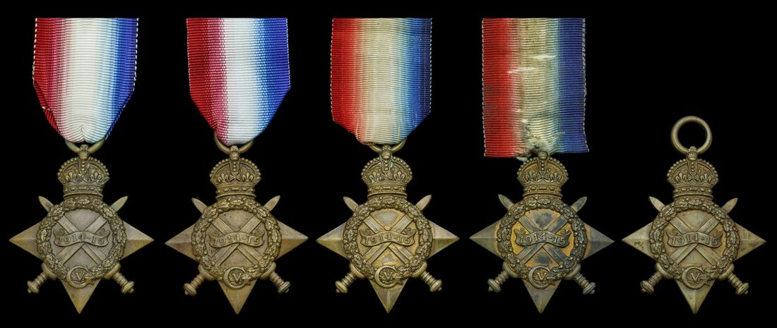 (x) 1914-15 Star (5) (03477 Pte. B. Wright, A.O.C., 7352 Pte. L. C. Jones, A.V.C., SS-22908 Pte. E. Jones. A.S.C., T4-059496 Dvr: G. Jones. A.S.C., SS-15999 Pte. J. Hussey. A.S.C.), overall good very fine
