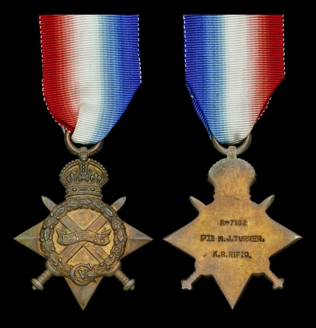 A 1914-15 Star to Private H. J. Turner, King's Royal Rifle Corps, who was killed in action on 3 October 1918