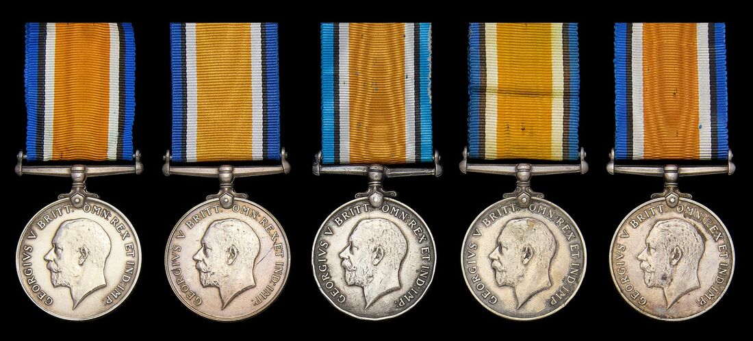 British War Medal 1914-20 (5) (S4-157611 Pte. A. Gregory. A.S.C., 38569 Pte. F. Webb. R. W. Fus., M-271102 Sjt. F. J. T. Jones. A.S.C.,128871 Pte. W. Heard. M.G.C., 408173. 3 A.M. E. Grant. R.A.F.), the last with heavy edge bruising and contact marks, otherwise good very fine