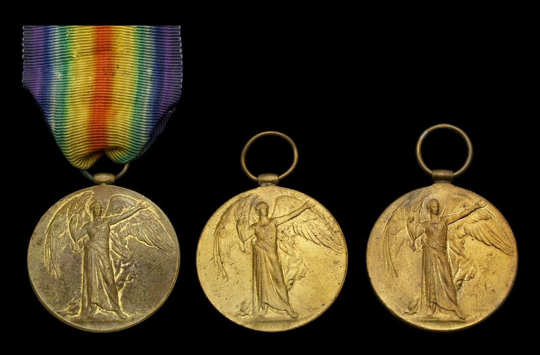 Victory Medal 1914-19 (3) (217141 Gnr. C. Anderson. R.A.; 872 Bmbr. F. Pearson. R.A.; 129467 Gnr. F. A. Critten. R.A.) very fine