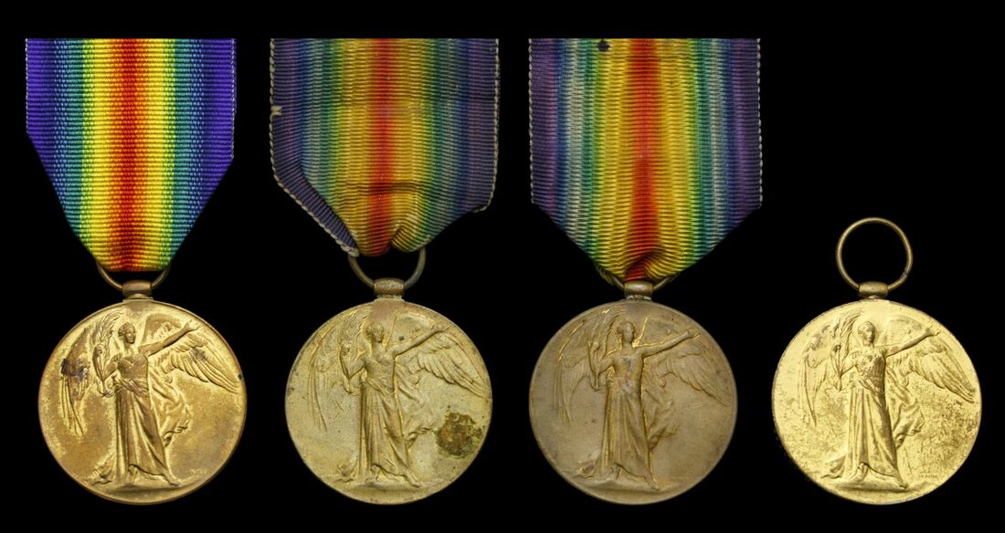 Victory Medal 1914-19 (4) (269409 Pte. W. T. Underwood. Herts. R.; 266955 Pte. J. Ratcliff. Herts. R.; 1-11798 Pte. W. S. Vaughan. Herts. R.; 10117 Pte. H. G. Cowling. Herts. R.), generally very fine throughout