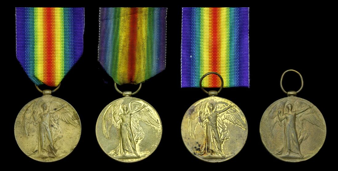 (x) Victory Medal 1914-19 (4) (67389 Pte. E. R. Jones. 2-Lond. R., 5149 Pte. R. A. Jones. 12-Lond. R., 76257 Pte. J. Mulholland. Durh. L. I., 59773 Pte. W. Jones. Devon. R.), overall very fine