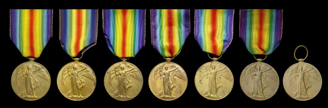 Victory Medal 1914-19 (7) (1952 Sepoy Mehar Khan, RSV. BN. B.M.P.; J. Newton, M.R. Workshop, I.E.F.D.; 565 Sepoy ShanchiKhan, BAH. C.T.Cps.; 3211/4 Sepoy Khonak, 1BN. Cps Guides.; 45 Pte Purdil Khan, 1-128 Pnrs.; 721 Sepoy Makhmad Ghulam, 53 Sikhs F.F.; 380 Civ-Sar. Nek Mohd, C.D.C.P.), generally good fine to very fine