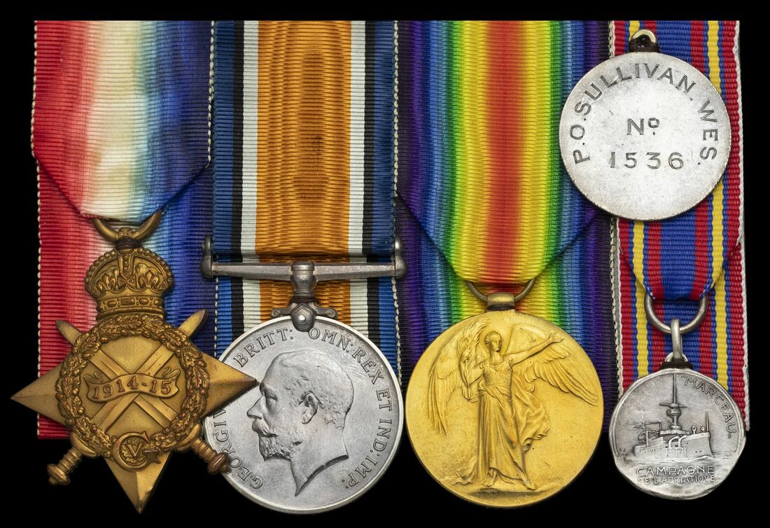 1914-15 Star (O.N. 1536 P.O. Sullivan. Ldg. Sea.); British War and Victory Medals (1536 P. O. Sullivan. P. O. R.A.N.), mounted for display, good very fine (3)