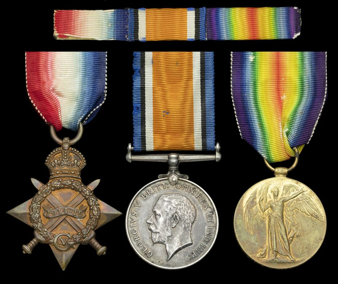William John Gillett enlisted on 8 September 1914 and served in Egypt from 31 August 1915. He is entitled to a Silver War badge (316996 and is noted as being Discharged due to sickness on 13 April 1919. A further note on his Medal Index Card notes 'Agent for London Electric Ry. Co returns 1914-15 Star, found on the premises. 23. 9. 20.'; sold together with recipient's uniform riband bar.
