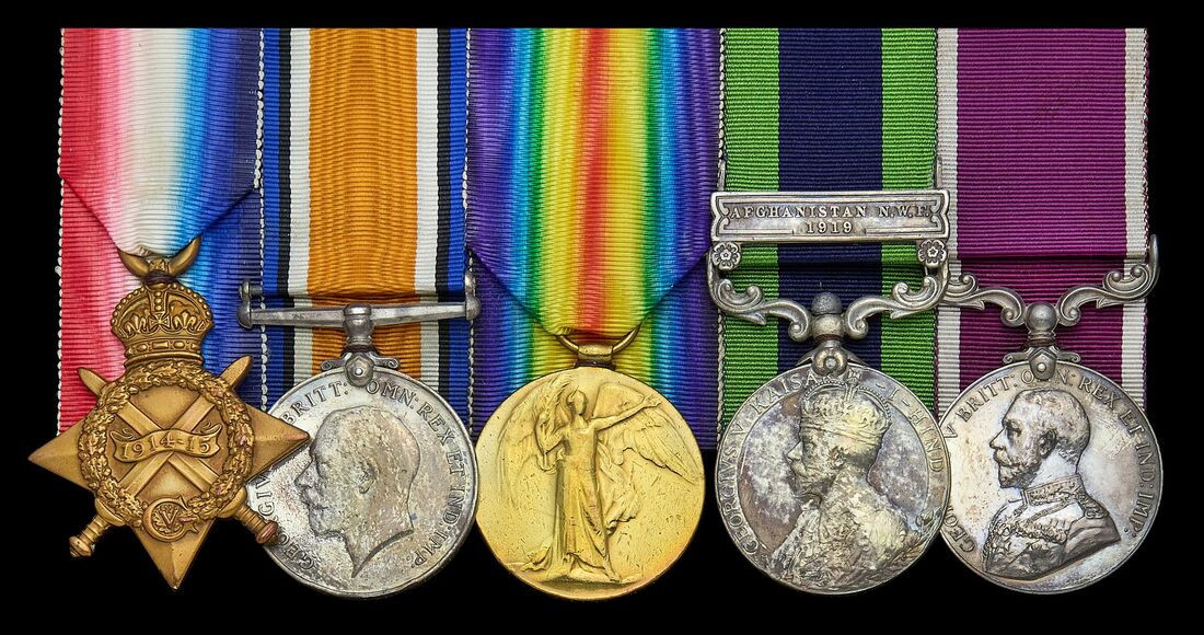 1914-15 Star (7632 Pte. F. G. Ling, Norf. R.); British War and Victory Medals (7632 Pte. F. G. Ling. Norf. R.); India General Service 1908-35, 1 clasp, Afghanistan N.W.F. 1919 (7632 L Corpl. F. Ling, 2/Norfolk Regt.); Army L.S. & G.C., G.V.R. (5766118 Pte. F. G. Ling. Norf. R.) the fourth crudely repinned, contact marks, very fine (5)