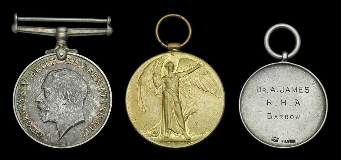 His M.I.C. confirms service with the Royal Horse Artillery. Comes with a small silver disc awarded to Driver James R.H.A. Barrow with gratitude from Friends at home for services rendered.
