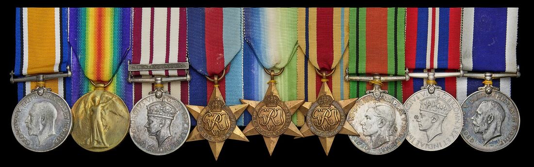 British War and Victory Medals (J.69483 A. H. Libby. A.B. R.N.); Naval General Service 1918-62, 1 clasp, Palestine 1936-1939 (J.69483 A. H. Libby. C.P.O. R.N.); 1939-45 Star; Atlantic Star; Africa Star; Defence and War Medals 1939-45; Royal Navy L.S. & G.C., G.V.R. (J.69483 A. H. Libby. P.O. H.M.S. Lucia.), contact wear overall, heavy polish to obverse of Great War awards, overall very fine (9)
