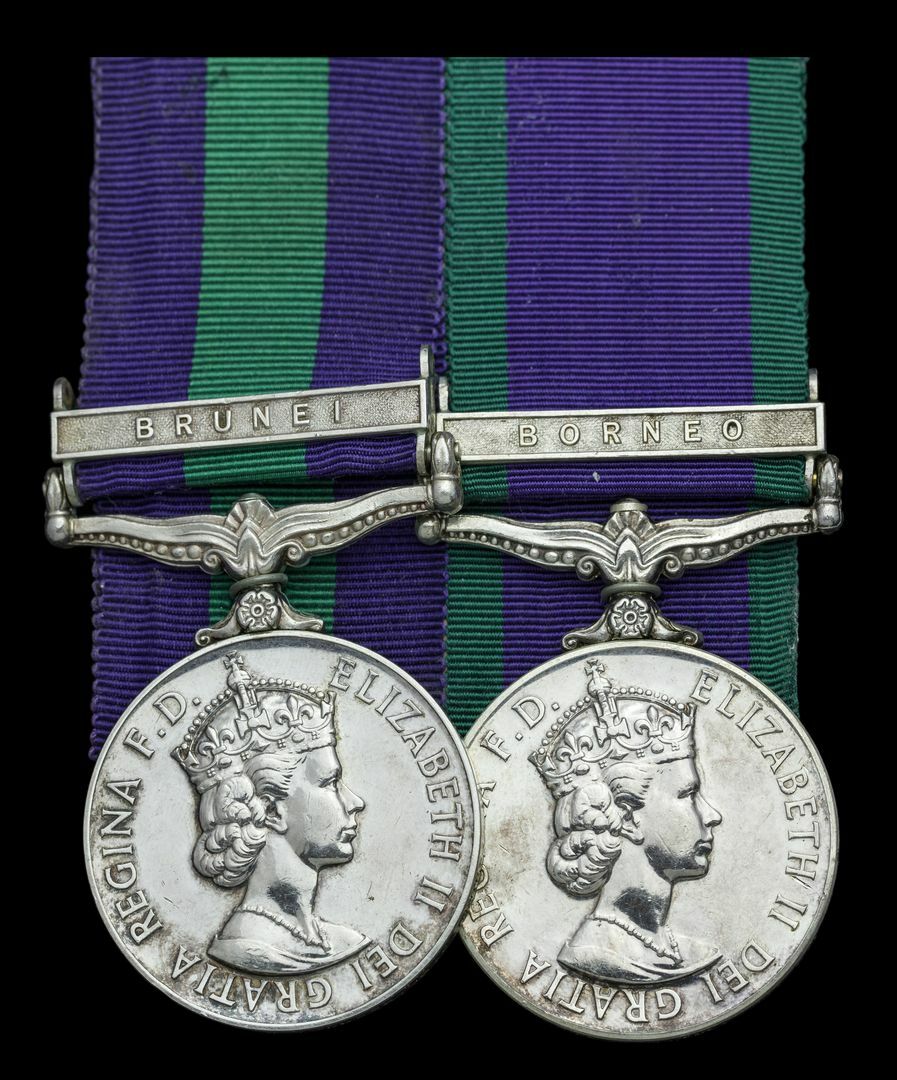 General Service 1918-62, 1 clasp, Brunei (23862361 Pte. W. Tulloch. Q. O. Hldrs.); General Service 1962-2007, 1 clasp, Borneo (23863261 Pte. W. A. Tulloch. Q. O. Hldrs.), note number, good very fine (2)