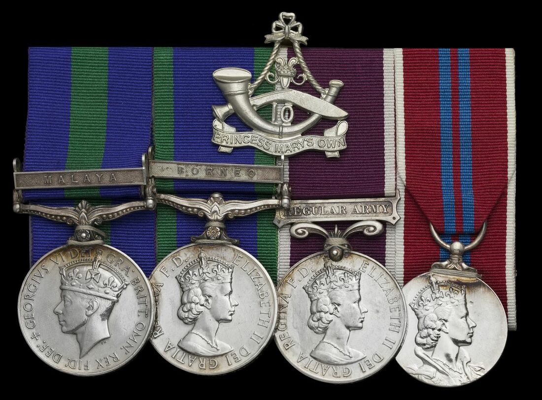 General Service 1918-62, 1 clasp, Malaya, E.II.R. (21140172 Rfn. Edward Tamang. 10. G.R.); General Service 1962-2007, 1 clasp, Borneo, (21140172 S.Sgt. Edward Thomas 1/10 GR.); Army L.S. & G.C., E.II.R., Regular Army (21140172 Sgt. Edward Thomas 10 GR); Coronation 1953, Court mounted as worn, number reimpressed on L.S. & G.C., good very fine (4)