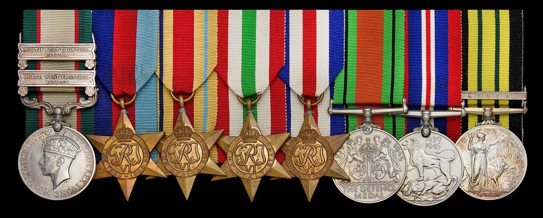 India General Service 1936-39, 2 clasps, North West Frontier 1936-37, North West Frontier 1937-39 (7586982 L.Cpl. W. T. H. Godwin. R. T. C.); 1939-1945 Star; Africa Star; Italy Star; France and Germany Star; Defence Medal; War Medal 1939-1945; Africa General Service 1902-56, 1 clasp, Kenya (Chief Officer. W. T. H. Godwin.), mounted for display, good very fine (8)