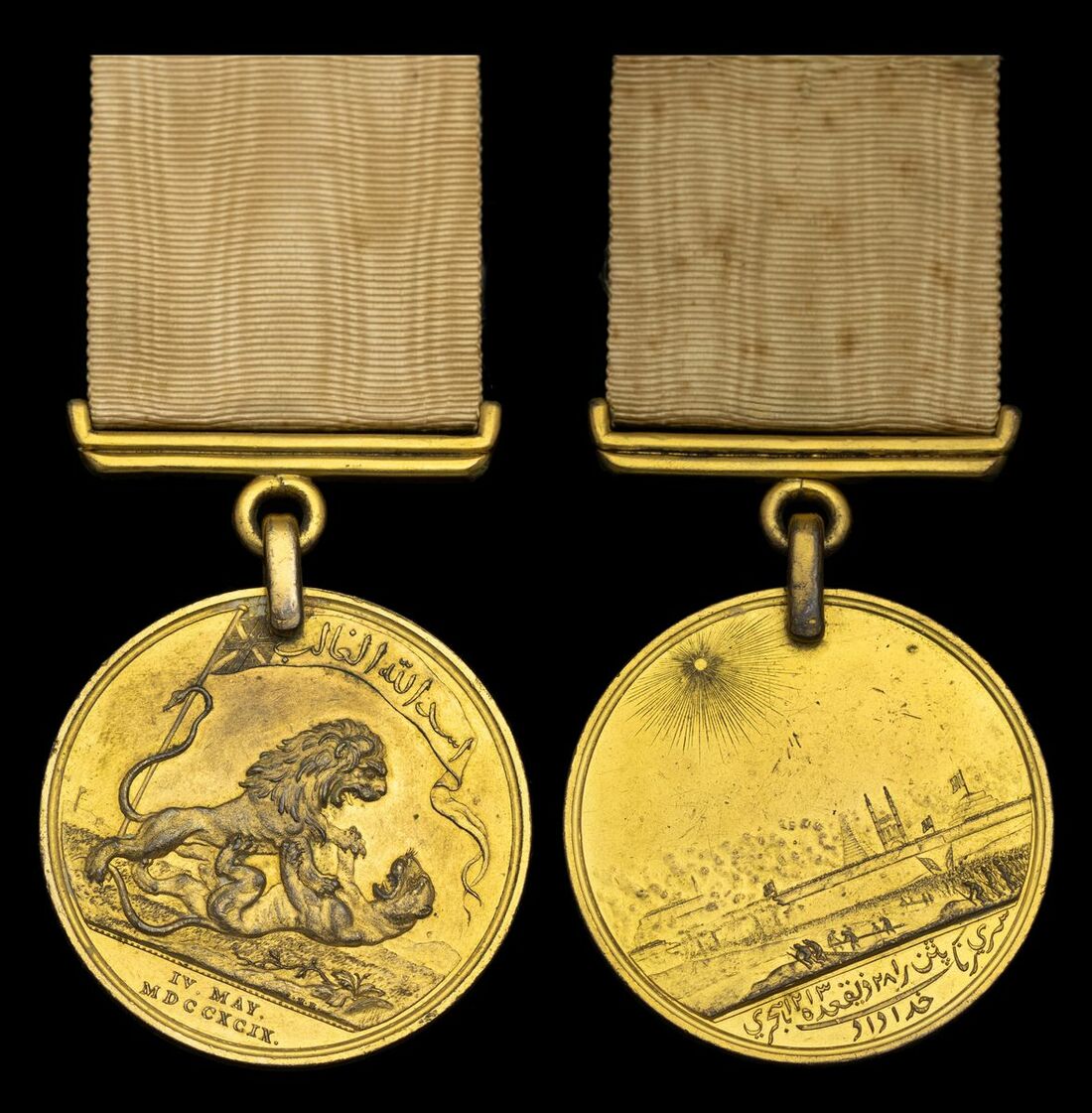Honourable East India Company Medal for Seringapatam 1799, bronze-gilt, fitted with clip and straight bar suspension, light wear to highpoints with loss of gilding, otherwise good very fine