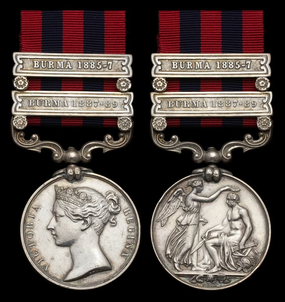 India General Service 1854-95, 2 clasps, Burma 1885-7, Burma 1887-89 (1607 Private C. Flynn 2nd Bn R. Muns Fus.), evidence of solder around claw, otherwise very fine