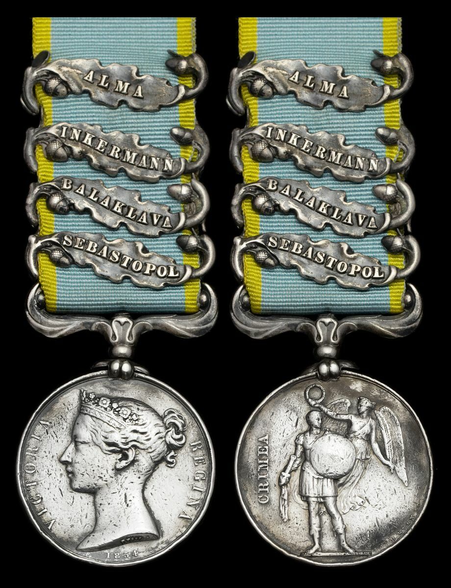 Crimea 1854-56, 4 clasps, Sebastopol, Balaklava, Inkermann, Alma, French issue, the clasps mounted in the incorrect order of service (J.L……82. Ligne.), edge bruising, heavy wear to naming, fine