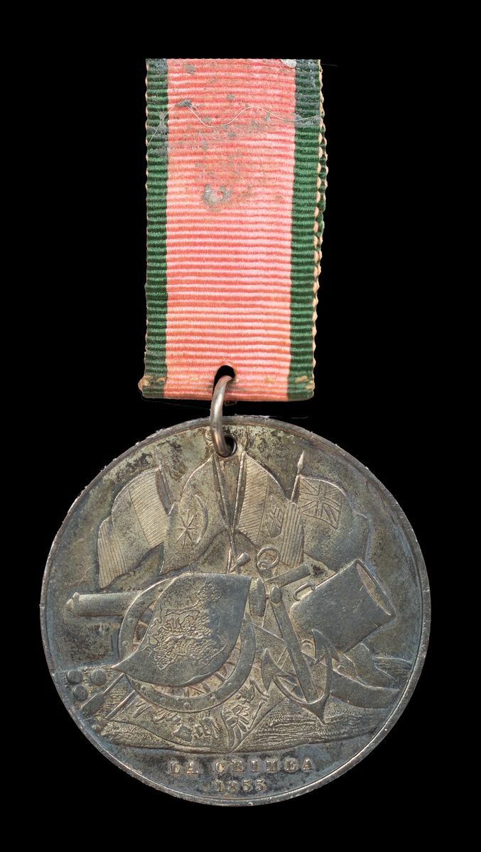 Turkish Crimea 1855, Sardinian die, pierced with ring for suspension, good very fine