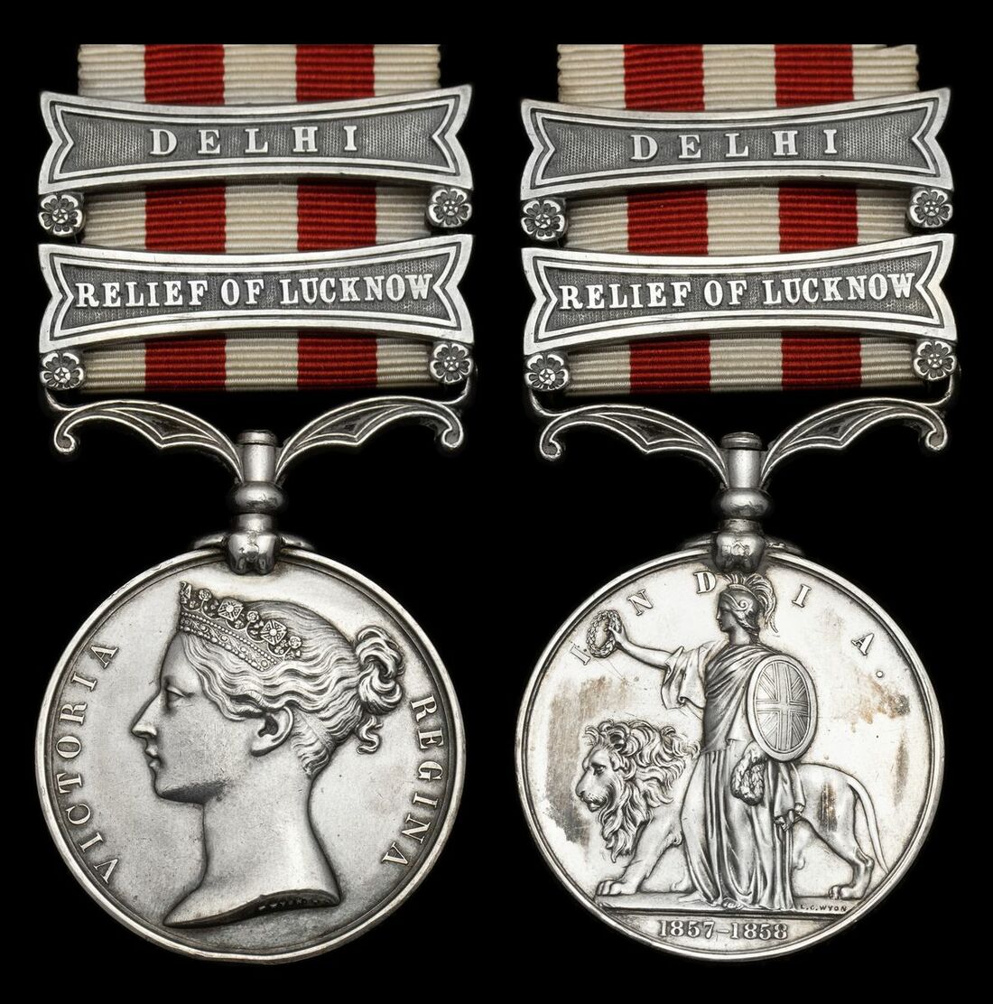 Indian Mutiny 1857-59, 2 clasps, Relief of Lucknow, Delhi (Pte. G. Gilbert, 9 Lancers.), officially impressed naming in the Indian Army style, one minor edge knock at 6 o'clock, otherwise good very fine