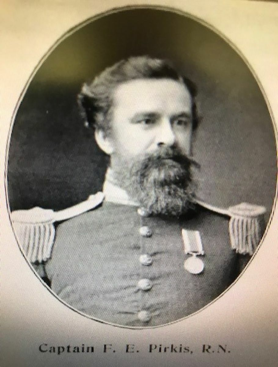 Frederick Edward Pirkis was born on 12 July 1835 and served on Comus during the Second China War. Pirkis became an Assistant Clerk on 22 March 1856; Clerk on 16 June 1858; Assistant Paymaster 16 December 1870; Paymaster 16 December 1870; Fleet Paymaster 17 February 1886; and finally the Retired List on 9 April 1893. Pirkis became a Fellow of the Royal Geographical Society, the Royal Microscopical Society, as well as Chairman of the National Canine Defence League. His address is recorded as Penlee, Richmond, Surrey. Pirkis died on 6 October 1910.