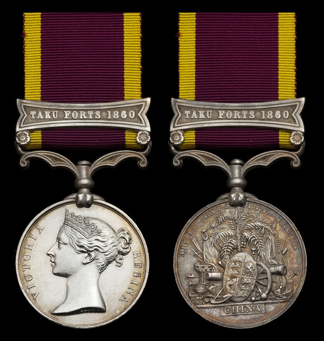 (x) China 1856-60, 1 clasp, Taku Forts 1860 (4224. Pte. F. Sharp. 44th Foot.), officially engraved later issue naming, good very fine