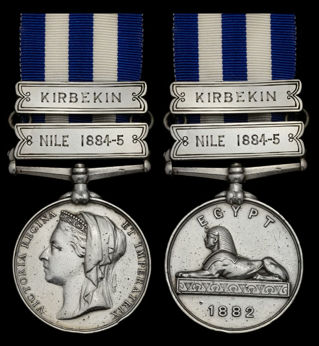 Egypt and Sudan 1882-89, undated reverse, 2 unofficial clasps, The Nile 1884-85, Kirbekan (24 Pte.J. Martin. 2/Derby. R.), pitting from Star, good very fine