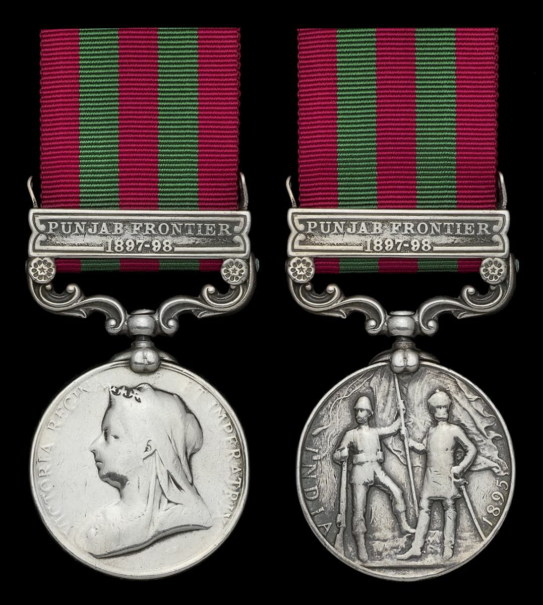 India General Service 1895-1908, 1 clasp, Punjab Frontier 1897-98 (4013 Pt...Frankum 2nd Bn. Arg: & Suth…Highrs.), naming rubbed, obverse polished, fine