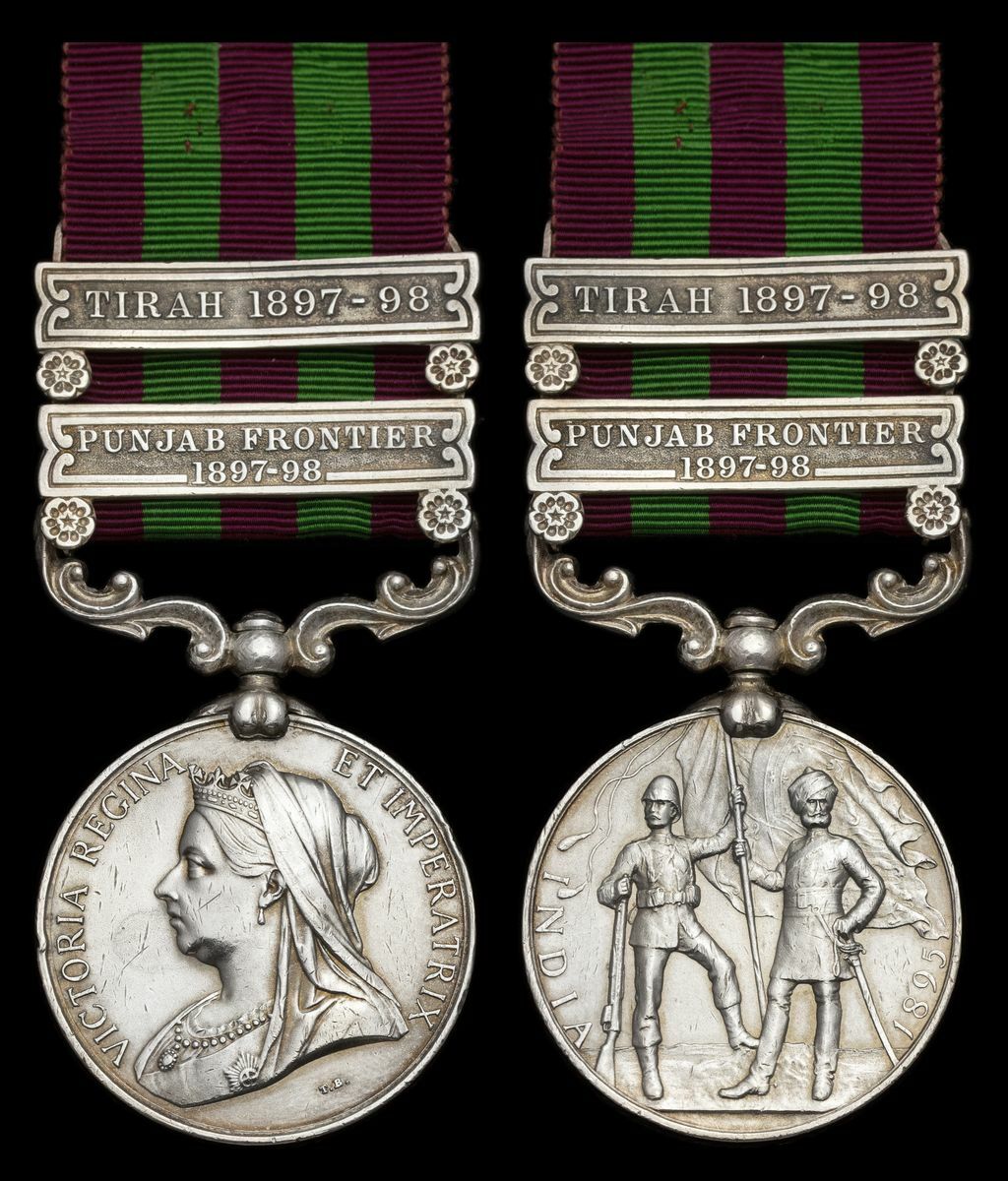 India General Service 1895-1908, 2 clasps, Punjab Frontier 1897-98, Tirah 1897-98 (3026 Sergt. C.J. Blackhall 2nd Bn Ryl.Innis.Fus.), contact marks, good very fine