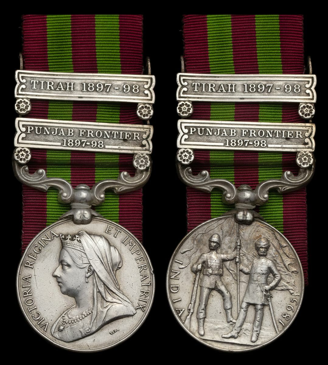 India General Service 1895-1908, 2 clasps, Punjab Frontier 1897-98, Tirah 1897-98 (3695 Pte. G. Young. 2d Bn Ryl. Suss. Regt.), contact wear overall, very fine
