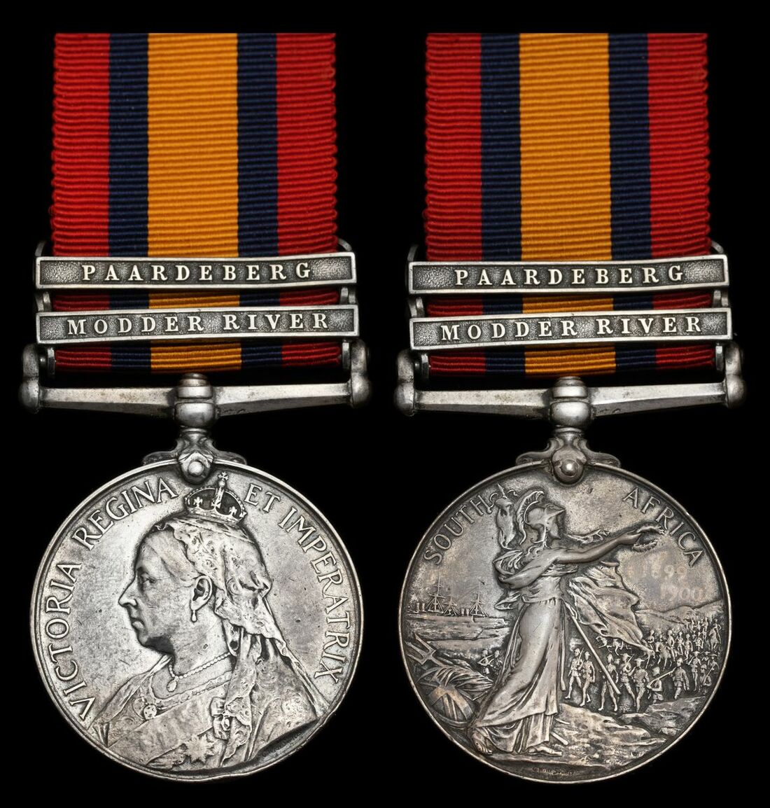 Thomas Drummond was born at Glasgow in 1877 and enlisted in the Argyll & Sutherland Highlanders on 20 October 1898. He was wounded at Paardeberg Drift on 18 February 1900 and again at Jacobsdal on 25 October 1900. Embarking to France with the 2nd Battalion, Argyll & Sutherland Highlanders on 10 August 1914, he was soon after discharged due to illness on 19 November 1914. He is additionally entitled to a 1914 Star trio and Silver War Badge; sold together with copied research.