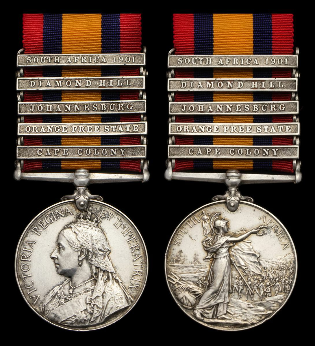 Queen's South Africa 1899-1902, 5 clasps, Cape Colony, Orange Free State, Johannesburg, Diamond Hill, South Africa 1901 (5319 Pte A. Ratcliffe. 26th Coy 7th Impl: Yeo:), light contact marks, otherwise very fine