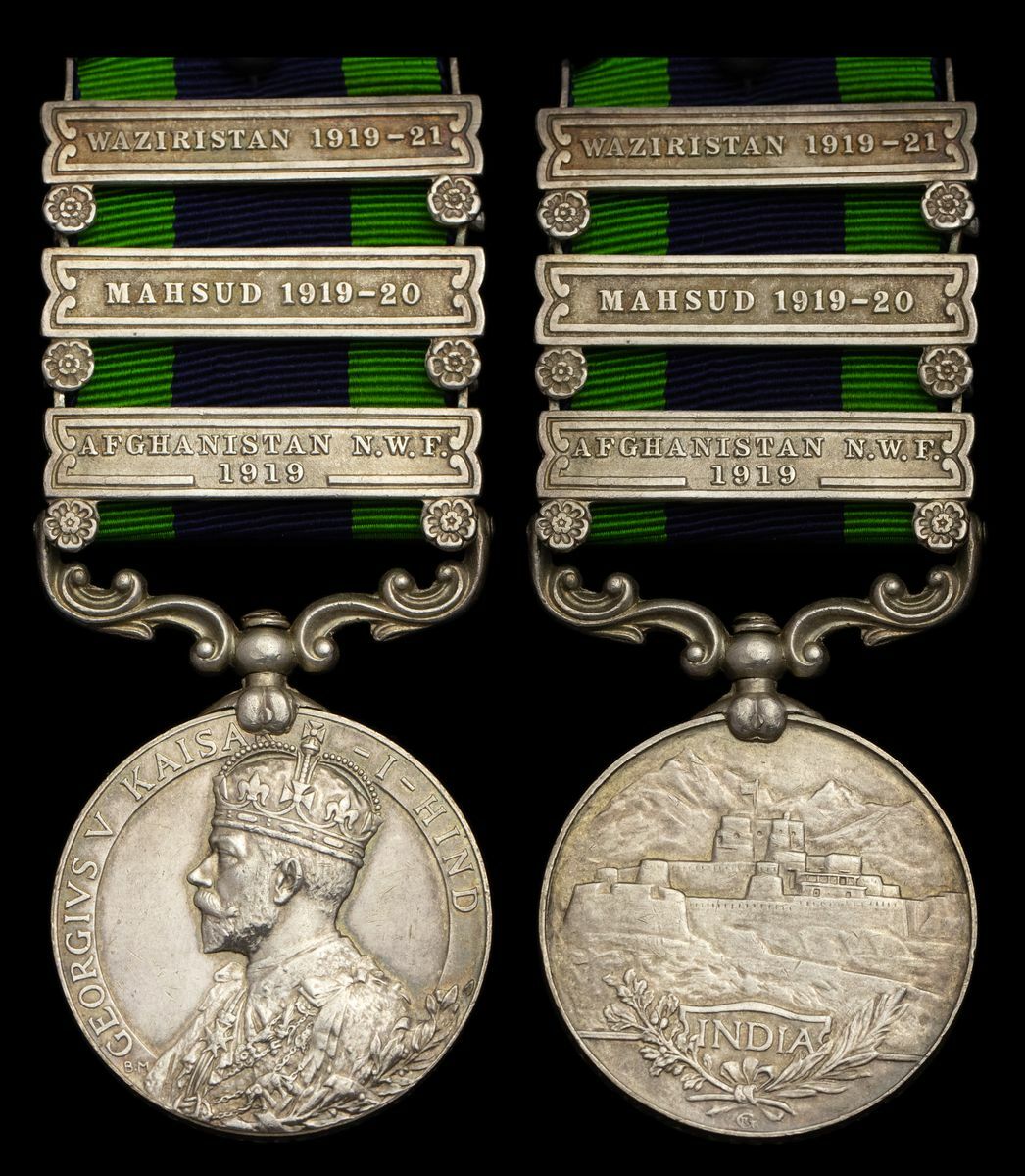(x) India General Service 1908-35, 3 clasps, Afghanistan N.W.F. 1919, Mahsud 1919-20, Waziristan 1919-21 (Capt. J. W. Leggat I. M. T.), very fine