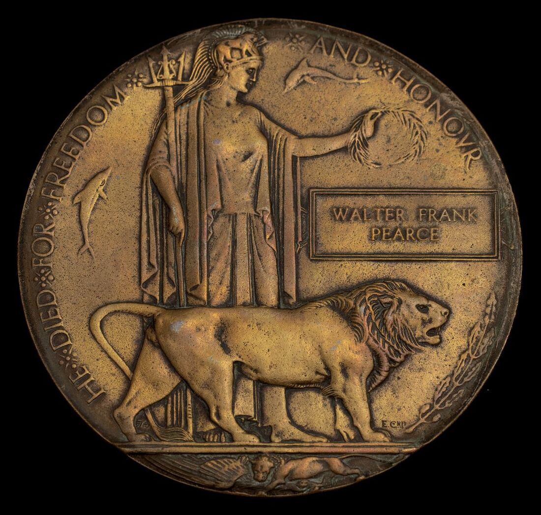 Great War Bronze Memorial Plaque (Walter Frank Pearce), polished, about very fine