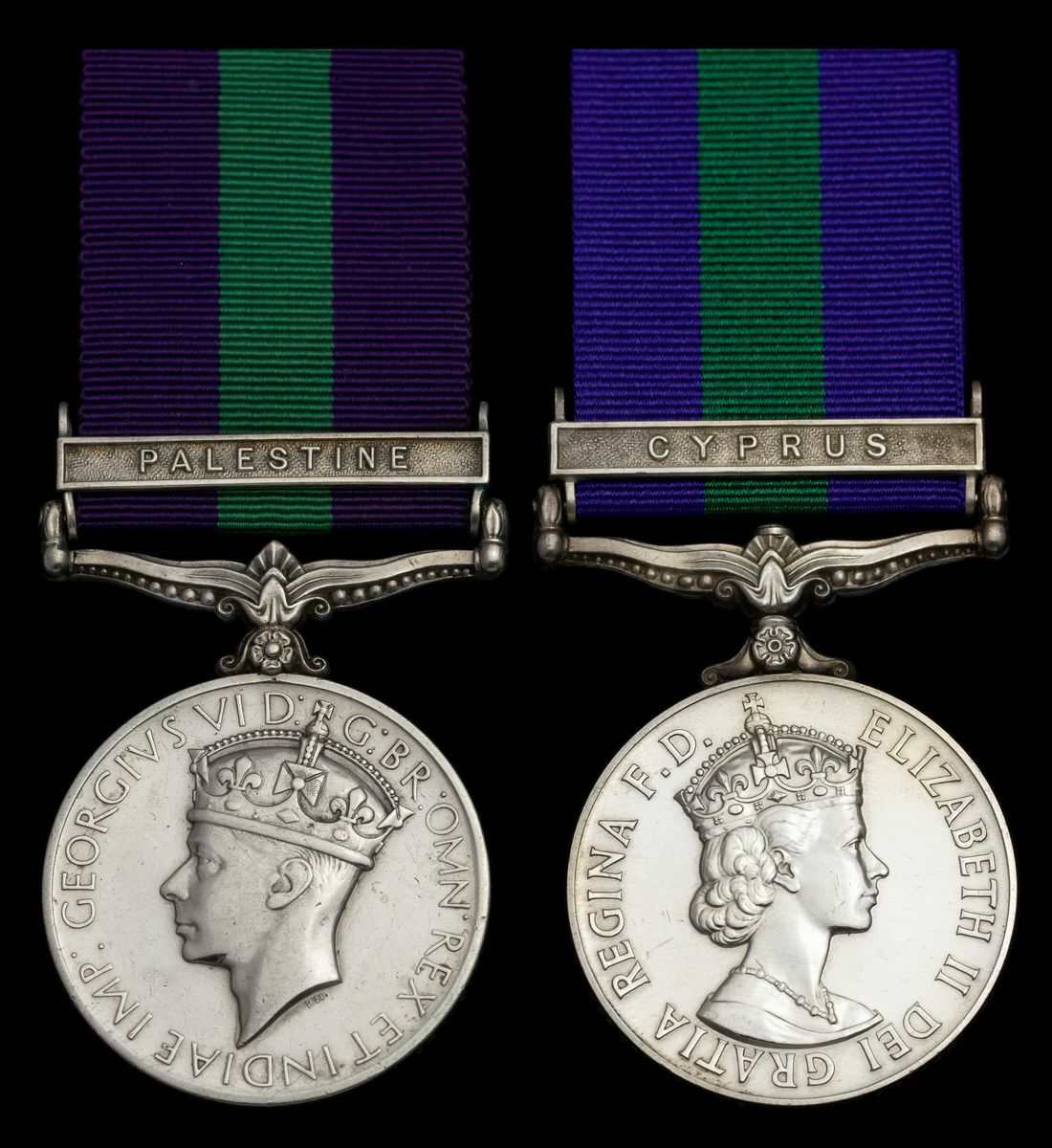 General Service 1918-62, E.II.R., 1 clasp, Cyprus (23425125 Pte. M.J.Claridge. R.Berks.), light contact marks, otherwise good very fine (2)