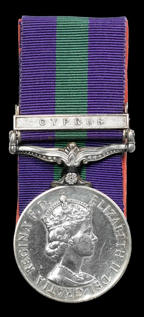 General Service 1918-62, 1 clasp, Cyprus (23252434 GDSM. N.G. Dennis. Gren. Gds.), court mounted for display, light contact wear, one edge knock at 5 o'clock, very fine