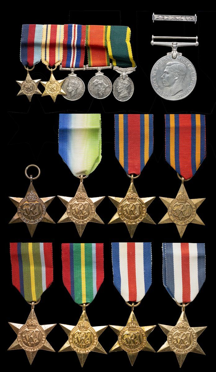 1939-45 Star; Atlantic Star; Burma Star (2); France and Germany Star (2); Pacific Star (2); Defence Medal 1939-45; dress miniatures 1939-45 Star; Africa Star; War Medal 1939-45; Africa Service Medal 1939-45; Efficiency Medal, Union of South Africa bar, mounted for wear; Second Award Bar for the Military Medal, good very fine (lot)