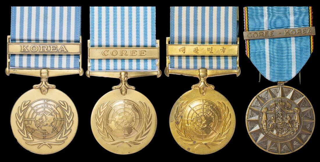 British issue; French speaking issue with Coree clasp; South Korean issue. With a further Belgium Korea War medal, 1 clasp, Coree - Korea, very fine or better (4)
