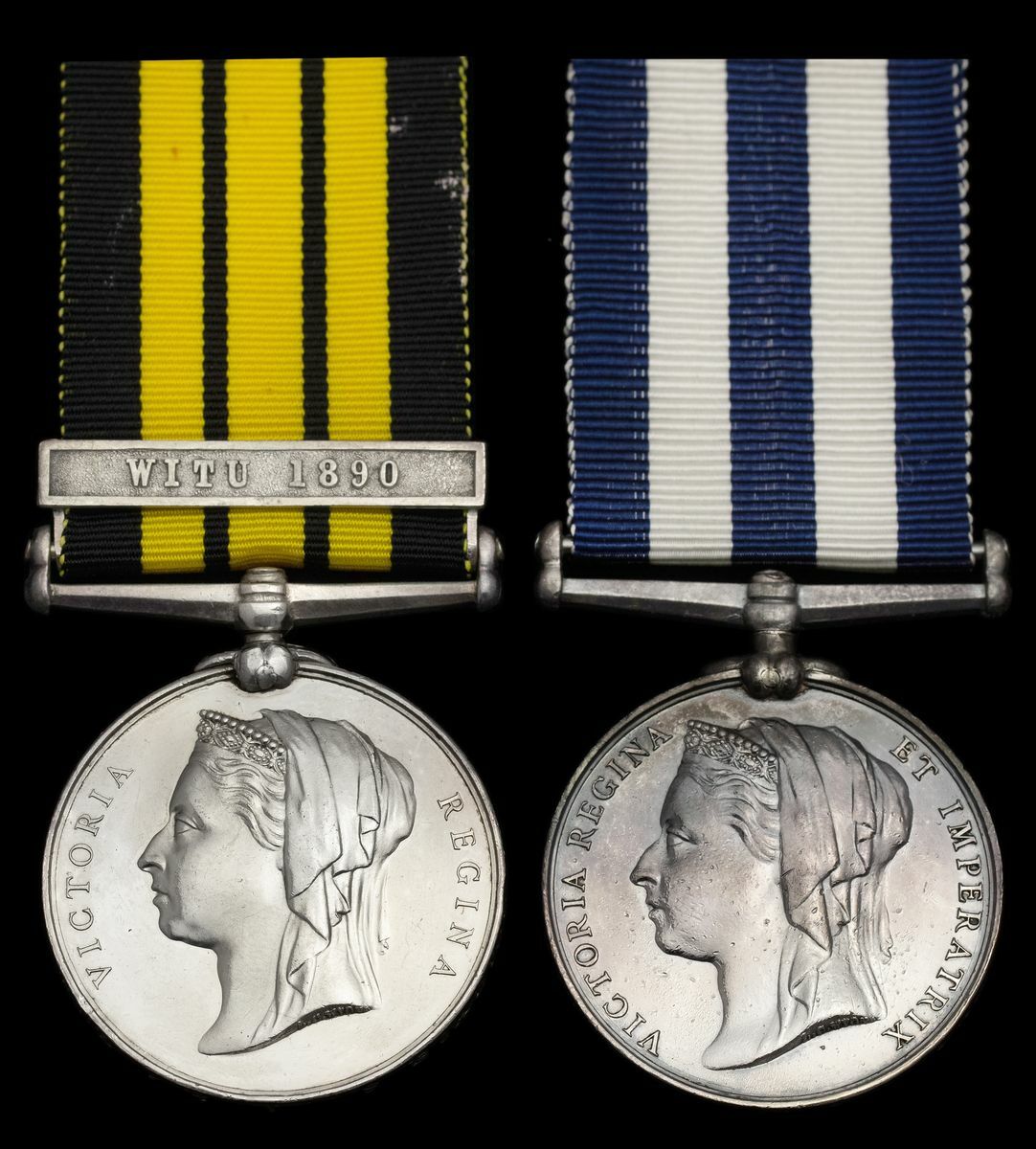 Egypt and Sudan 1882-1889, no clasp, dated reverse (W. Osborne. A.B. H.M.S. "Malabar"); East and West Africa 1887-1900, 1 clasp, Witu 1890 (W. Osborne, A.B. H.M.S. Boadicea.), pitting to first, minor contact wear otherwise, overall very fine (2)