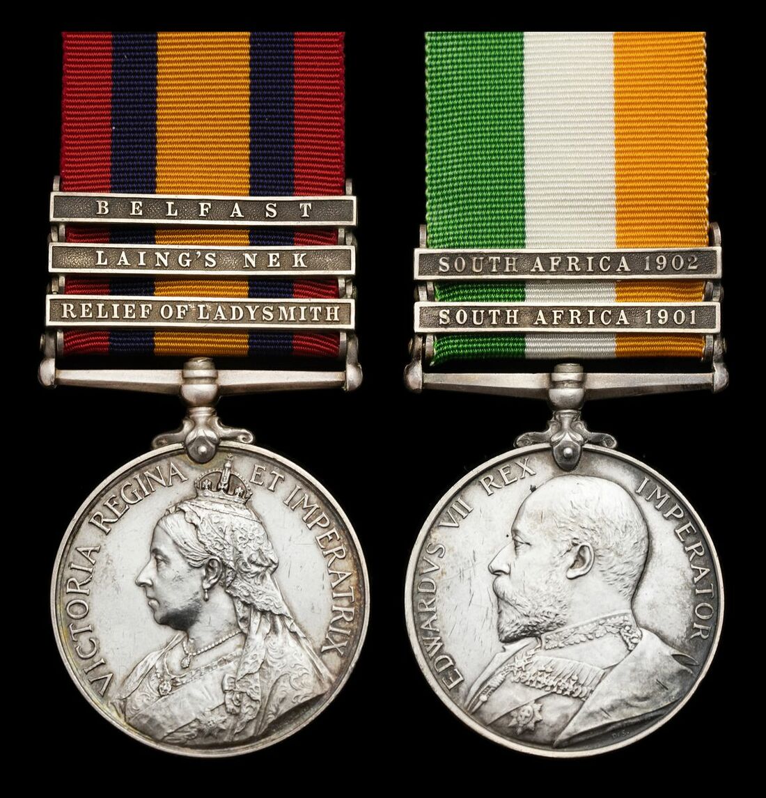 Queen's South Africa 1899-1902, 3 clasps, Relief of Ladysmith, Laing's Nek, Belfast (3842 Pte H. O'Rell, Liverpool Regt.); King's South Africa 1901-02, 2 clasps, South Africa 1901, South Africa 1902 (3842 Pte H. O'Kill. Liverpool Regt), light contact marks, otherwise very fine (2)