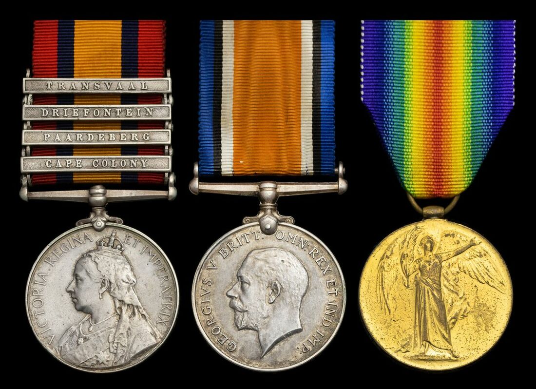 Joining the famous Doris Naval Brigade during the Anglo-Boer War he was present for the Battle of Paardeburg where this formation captured the 'Doris Gun'. This Boer pompom gun was mounted upon a pedestal to form a memorial to the men of the Naval Brigade who fell in action.